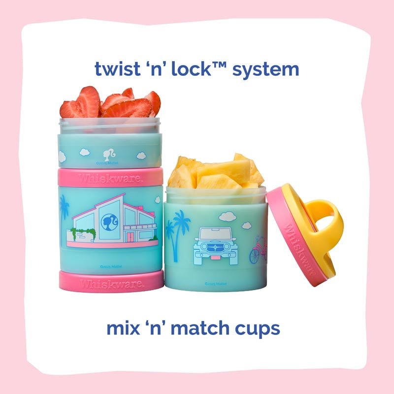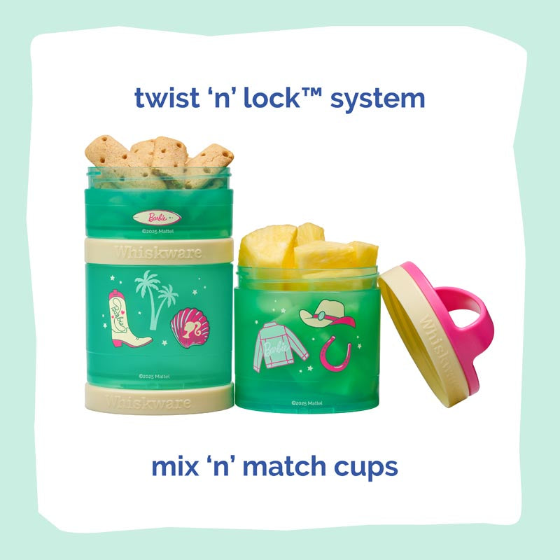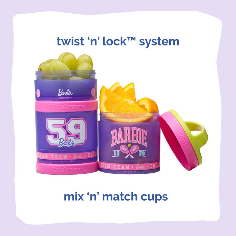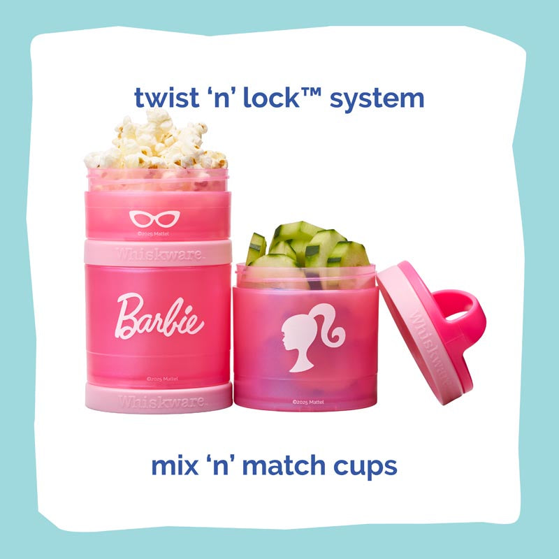 Our Barbie™ snacking containers make it easy to pack, stack, and snack anywhere life takes you. Each container twists and locks securely to keep snacks fresh and organized — no spills, no squish.