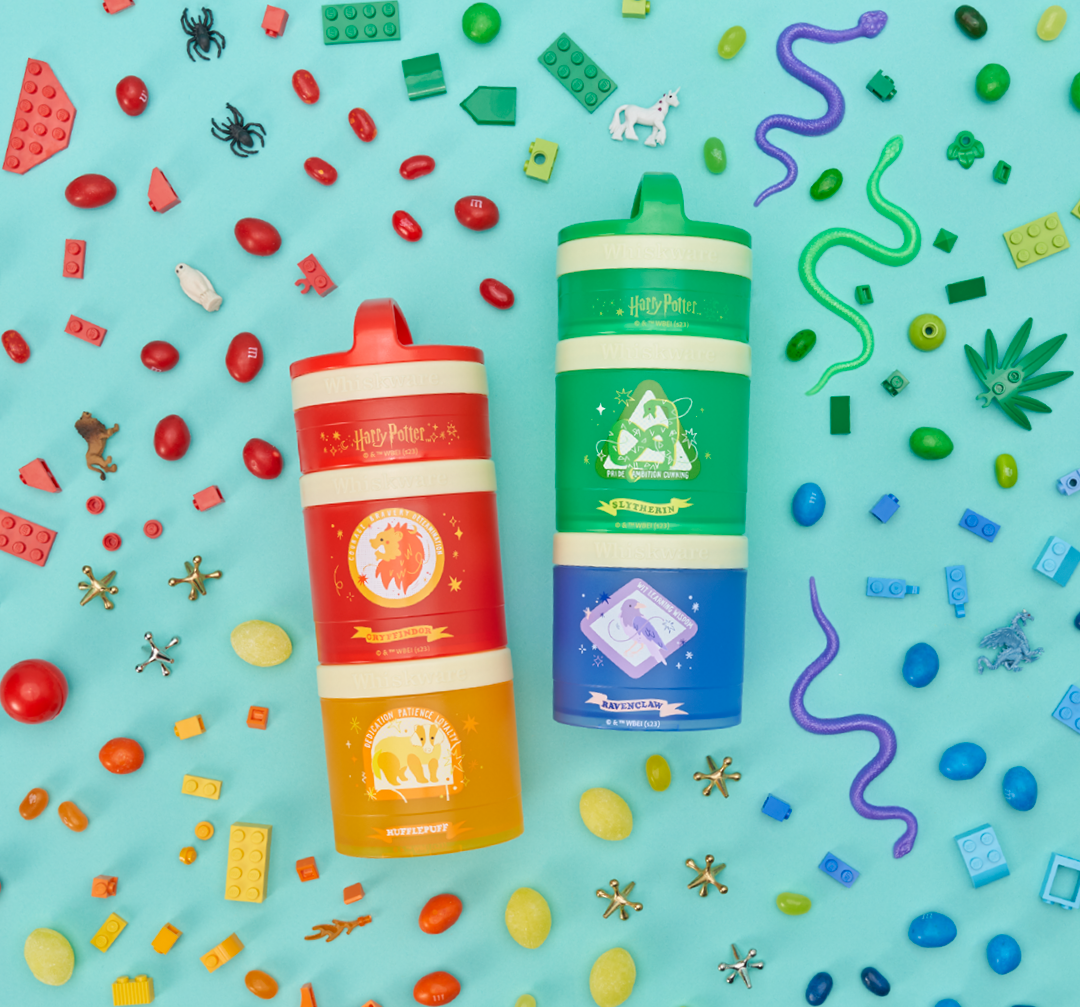 Perfect for little hands, cup-holder friendly, and packs easily into diaper bags and backpacks. Stack as many containers as you'd like, and mix-n-match your favorites.