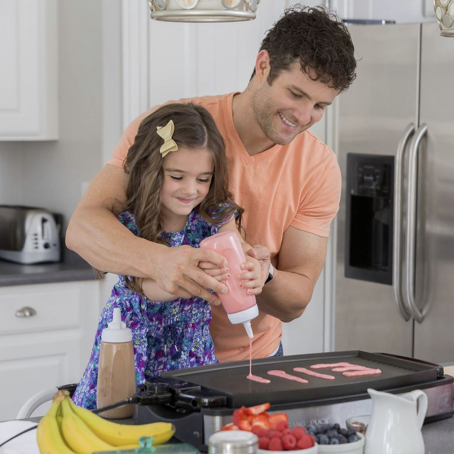 Breakfast can be delicious AND creative when you use our Pancake Art Kit! It comes with a convenient blender bottle to whip up the batter cleanly and with ease, as well as an art bottle and heat-resistant shapers to make endless, photo-worthy designs of your own.