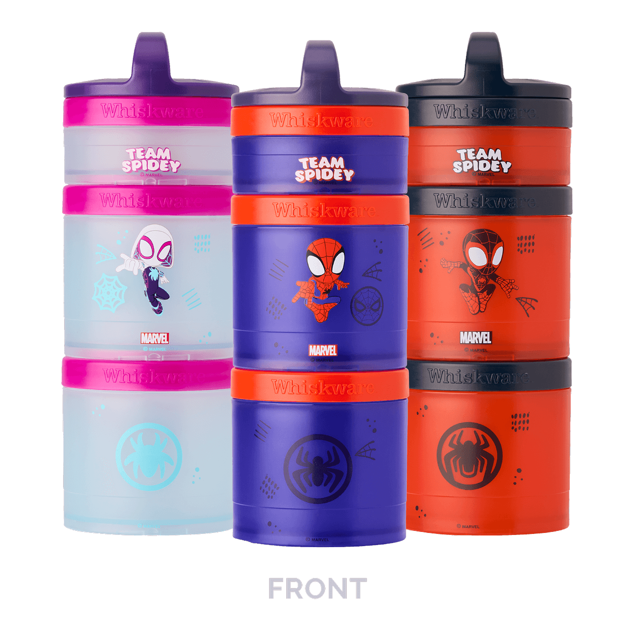 Perfect for little hands, cup-holder friendly, and packs easily into diaper bags and backpacks. Stack as many containers as you'd like, and mix-n-match your favorites.